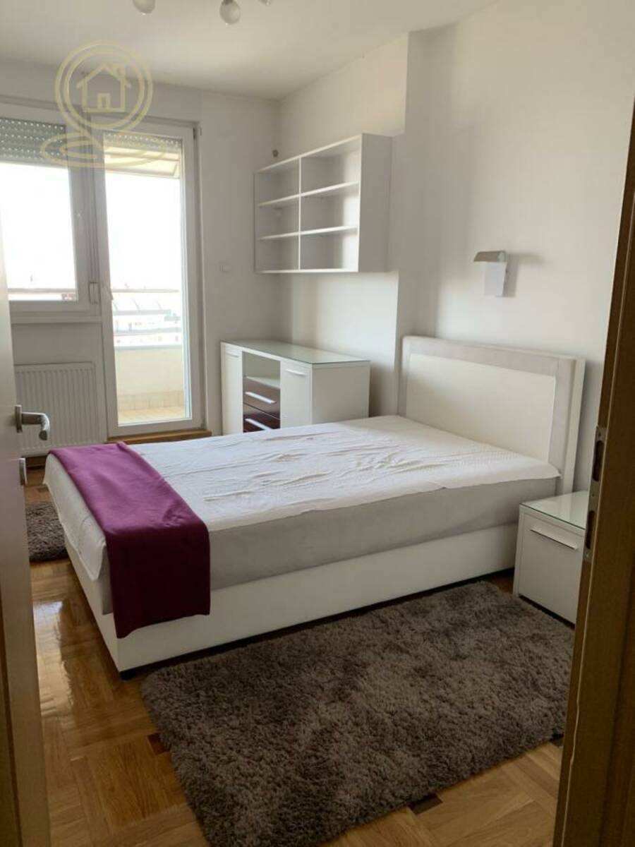 Stan se sastoji od predsoblja, kuhinje, tri spavaće sobe (od kojih je jedna u potpunosti opremljena garderoberima), kupatila sa tuš kabinom i kadom, posebnog WC-a, kao i dve prostrane terase. Posebna prednost ove nekretnine je garažno mesto, koje je uključeno u cenu zakupa.