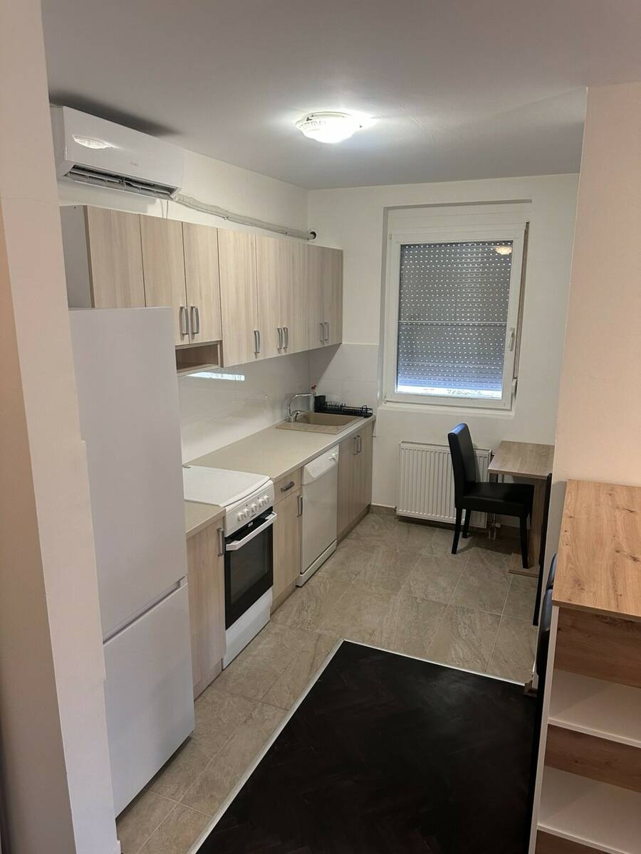 Izdaje se nov opremljen svetao stan, 43m, sastoji se iz dnevno-trpezarijskog dela, spavaće sobe i lepe velike terase. Stan je opremljen svime što je potrebno za udoban svakodnevni život (klima, sudo mašina, udoban francuski ležaj). U neposrednoj blizini nalaze se prodavnice, škole, vrtići, parkovi, kafići, restorani i sve ostalo što je neophodno za lagodan i komforan život. Linije u blizini 2,6,9,9A,11A,11B / 52,53,55,56.