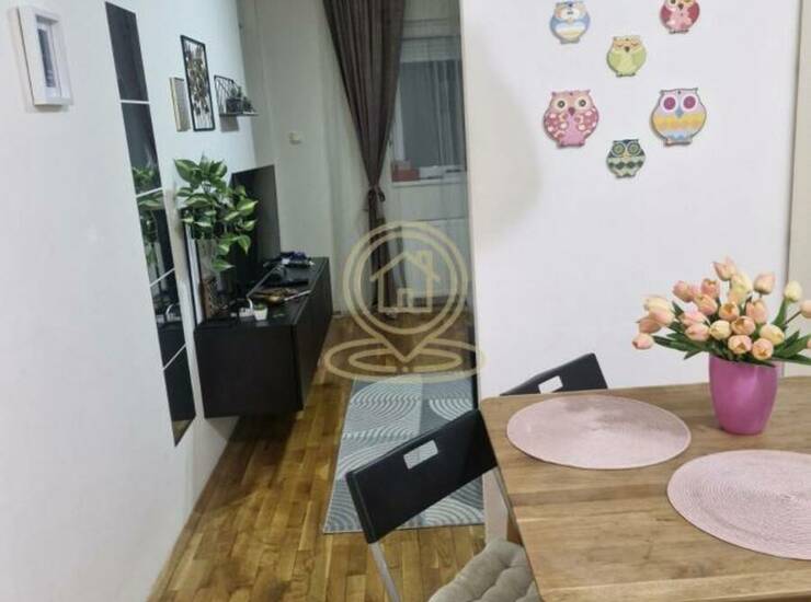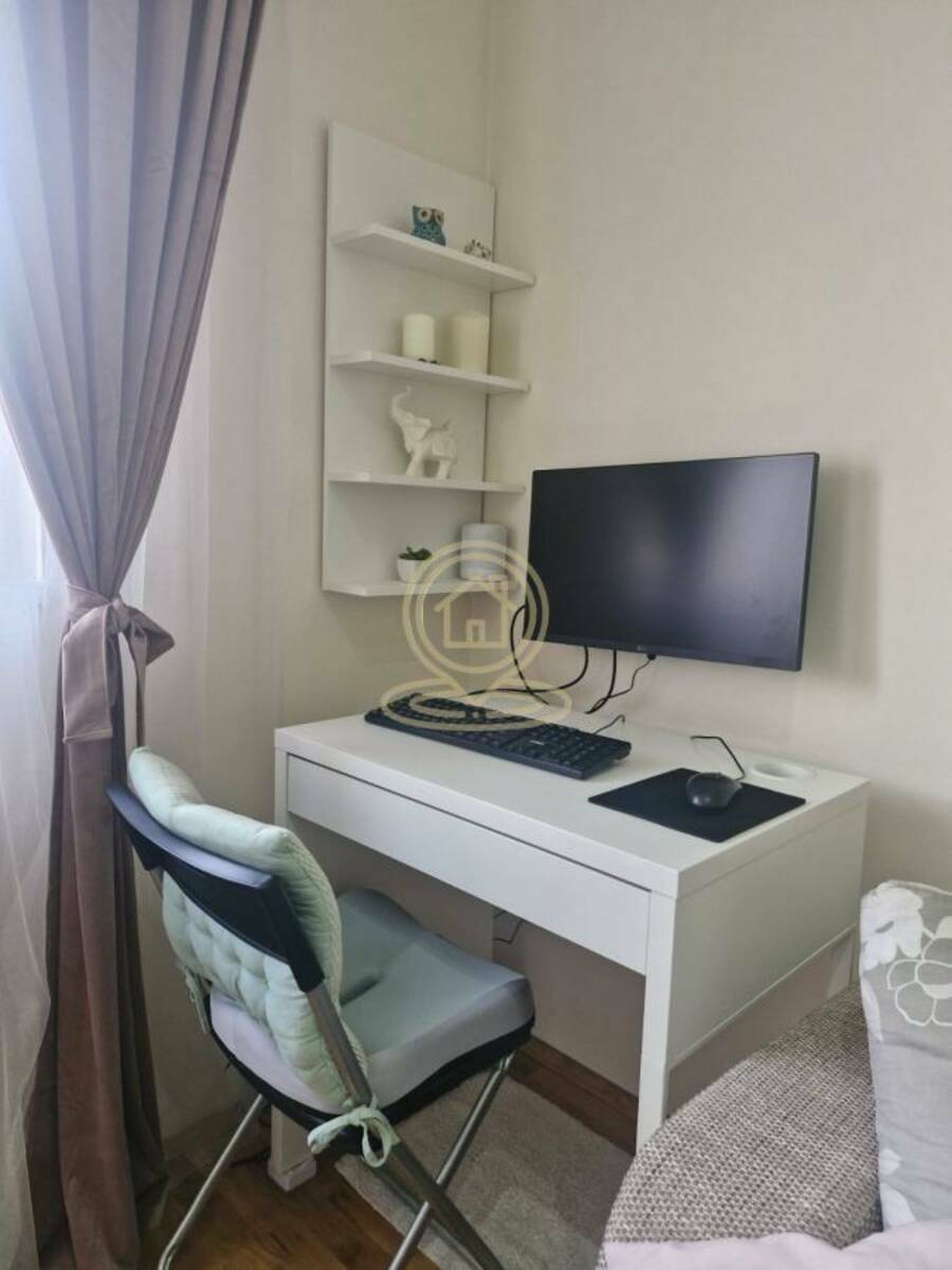 Stan je svetao i funkcionalno raspoređen, sastoji se od dnevnog boravka sa garniturom na razvlačenje, poluodvojene kuhinje sa trpezarijom, spavaće sobe sa velikim krevetom dimenzija 180x200 i prostranim plakarima, kao i kupatila. Dodatna prednost je što i kuhinja i kupatilo imaju prirodnu ventilaciju putem prozora.