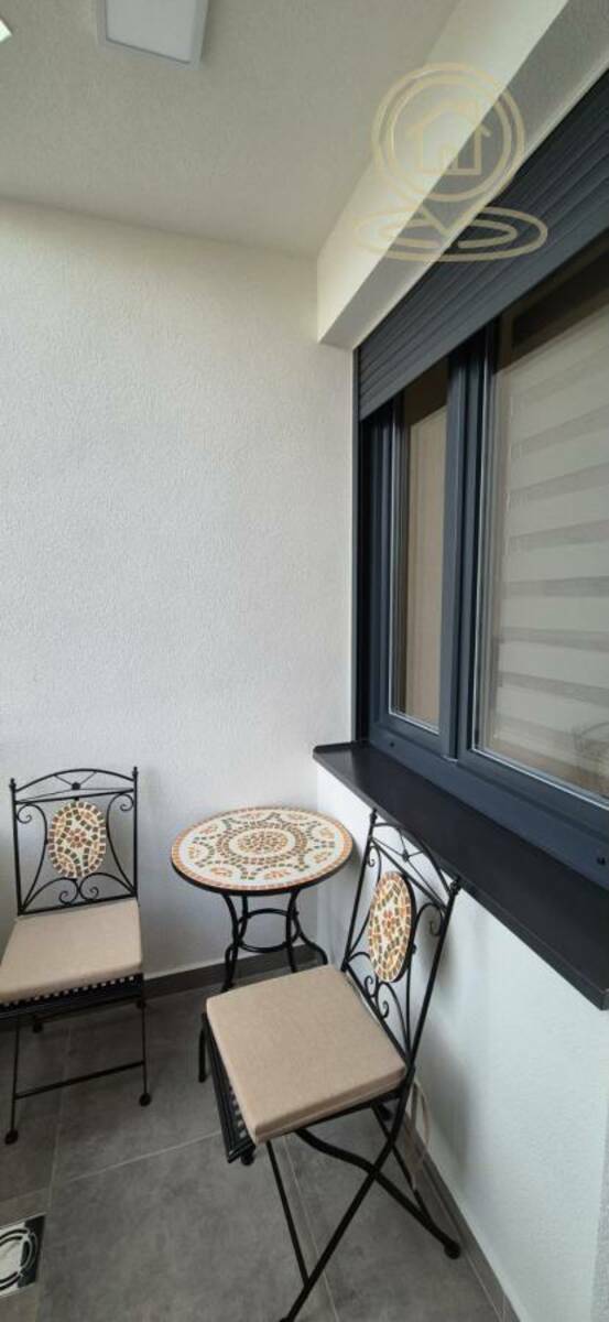 Stan se nalazi na prvom spratu i sastoji se od dnevnog boravka sa kuhinjom, izdvojene spavaće sobe, kupatila, hodnika i terase. Enterijer je moderno uređen, a stan je kompletno opremljen novim nameštajem i belom tehnikom.