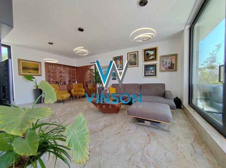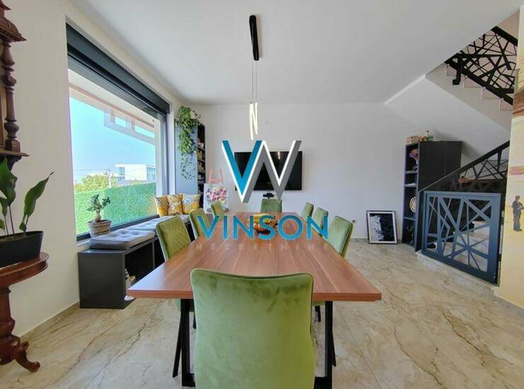 Sremska Kamenica. Izdvajamo iz ponude luksuznu nekretninu jedinstvenih karakteristika i visokog kvaliteta opreme i gradnje. Petosoban, kompletno namešten tripleks stan na obodu Fruške gore sa prelepim pogledom na Dunav i grad. Ovaj stambeni prostor, građen po principu smarthome sistema, poseduje tri redovne etaže, veliku terasu veličine 75m2 koja okružuje ceo stan i prednje dvorište od oko 45m2 koje može poslužiti kao parking za dva vozila. Prizemlje ovog stana predstavlja lep i svetao dnevni boravak, uvučena kuhinja sa prirodnom ventilacijom i kupatilo sa tuš kabinom. Prvi sprat je rezervisan za spavaću zonu i njega čine tri spavaće sobe i drugo kupatilo. Drugi sprat predstavlja prelepu galeriju sa izlazom na dve strane na veliku terasu sa pogledom na grad i Dunav, treće kupatilo. Podno grejanje na gas, alarm, video nadzor, elektro podizači roletni... Zakup na duži vremenski period. Useljiv odmah. (Vinson nekretnine, Novi Sad, Reg. br. posrednika: 1085)