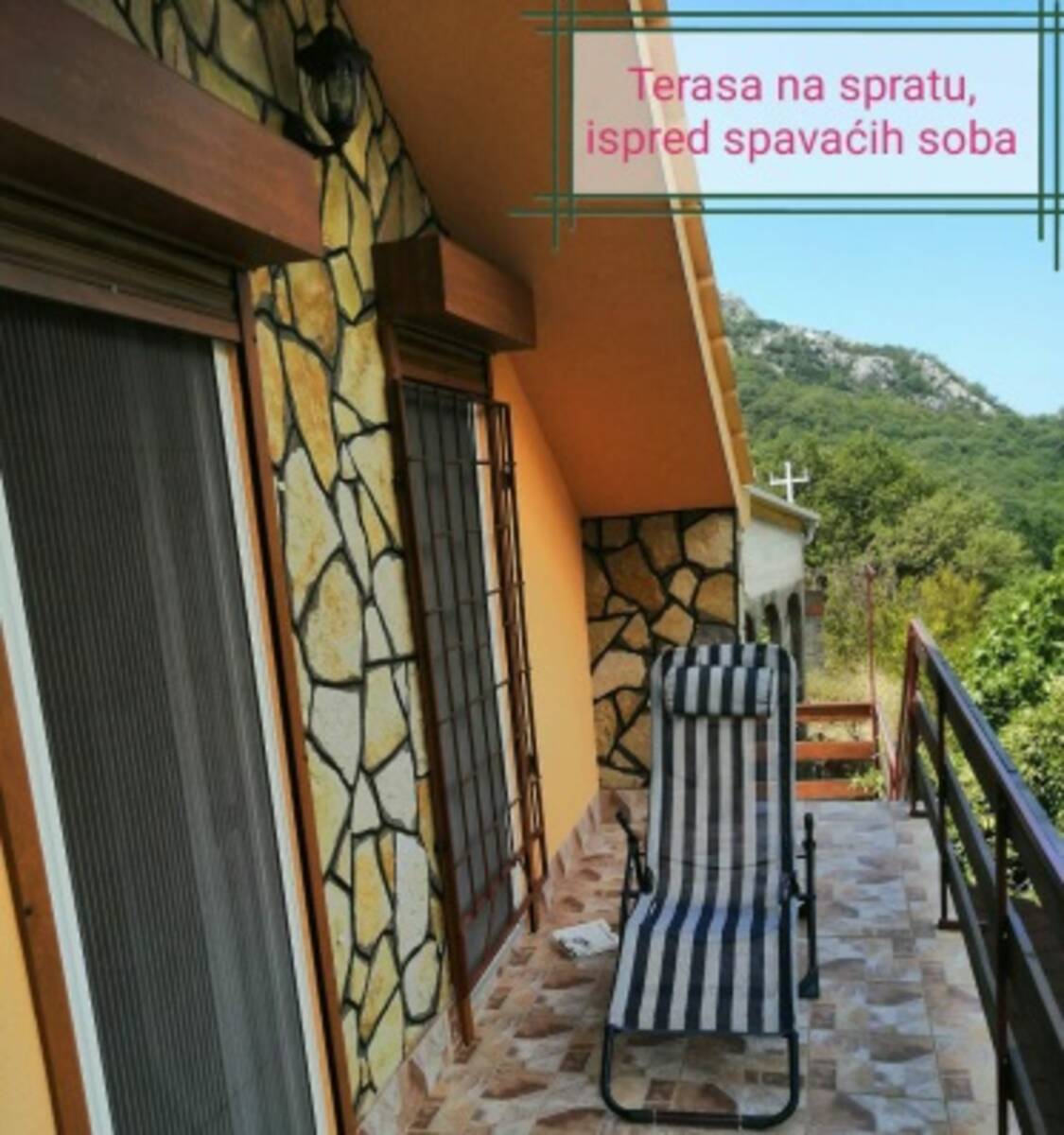 A na spratu su dve spavaće sobe sa izlazom na veoma lepu i prostranu terasu.