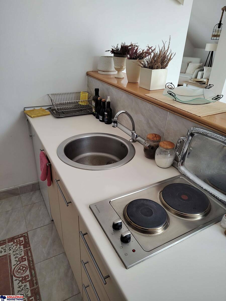 Sastoji se iz dve zasebne jedinice. Na donjem nivou je stan od 57kvm, a na gornjem duplex od 112kvm.