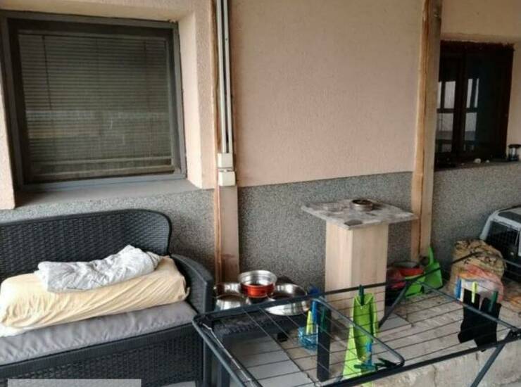 Sprat je površine 60m2 I sastoji se od terase, zastakljene terase iz koje se ulazi u dnevnu sobu, trpezarije i kuhinje iz kojih se ulazi u sobu i ostavu.