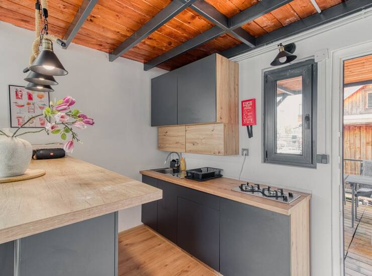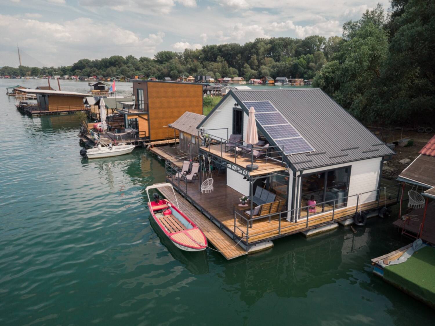 * Splav je gradjen za licne potrebe i uzivanje! Ima Solarne panele i sistem za vodu sa vodenom pumpom i filterima, frizider i protočni bojler.