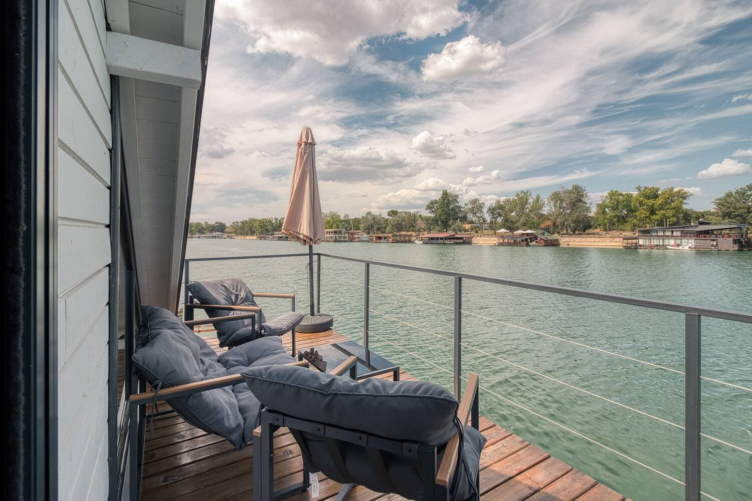 * Stoji na 5 nova, nepotopiva pontona koji su atestirani, odobreni od strane kapetanije i imaju garanciju 25 godina (radila ih je firma PIMI iz Beograda).
