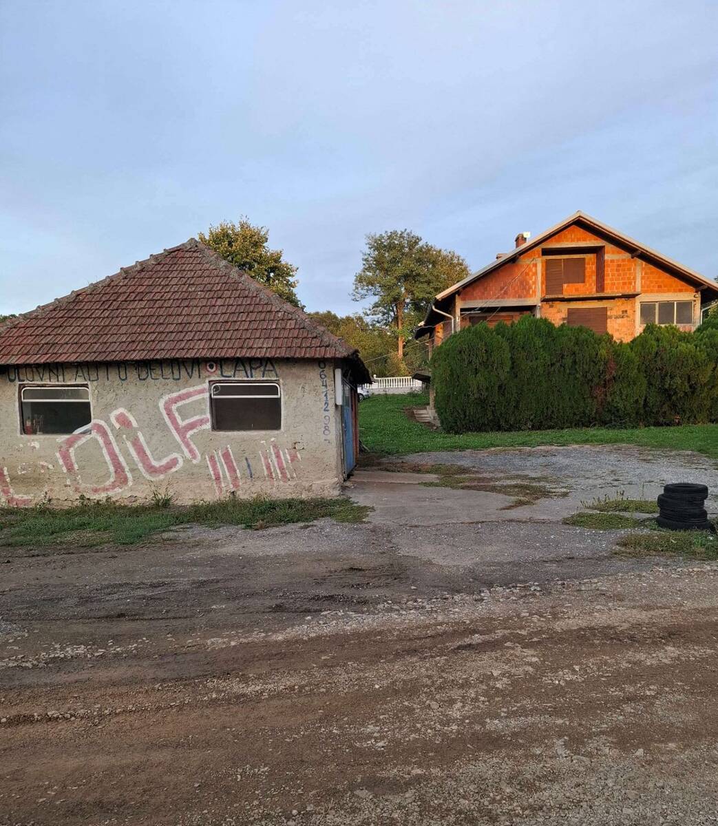 Na drugom delu placa se nalazi zgrada od 60kvm,(auto radionica)ima kanal,sada služi kao garaža,a drugi deo je bio lokal (prodavnica auto delova),tu se nalazi i velika bašta sa bunarom i hidroforom.