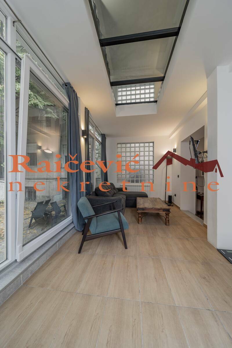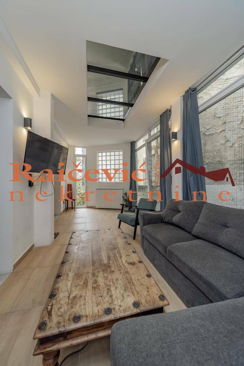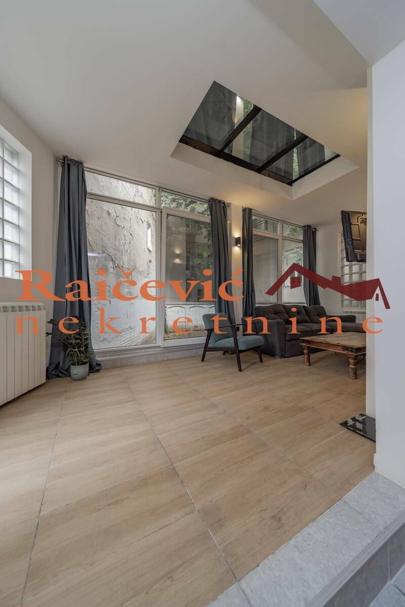 Kompletno rekonstruisana i renovirana (spolja i unutra) predratna kuca u neposrednoj blizini Studentskog trga i Knez Mihailove ulice, sa sopstvenim privatnim dvoristem (1.71 ari) u centru grada.