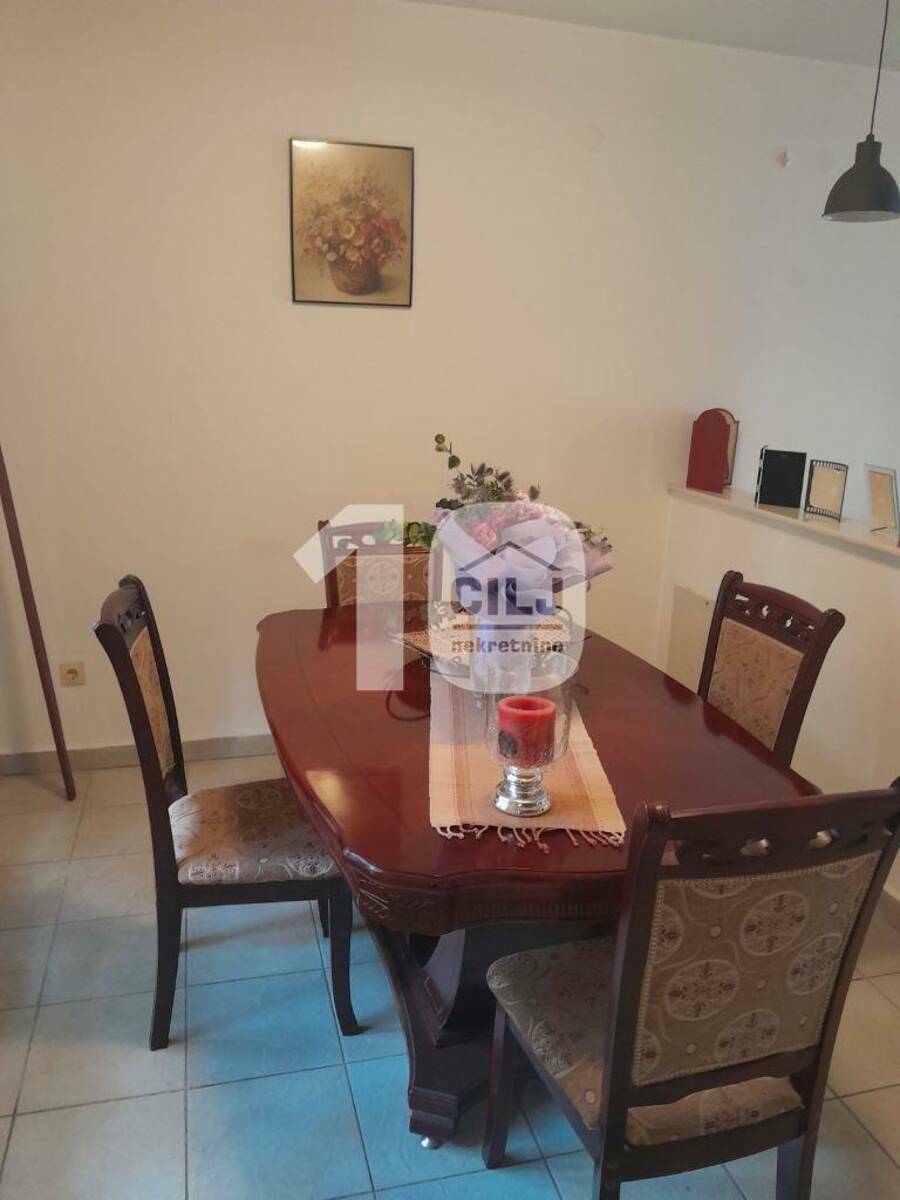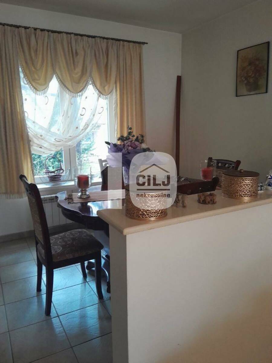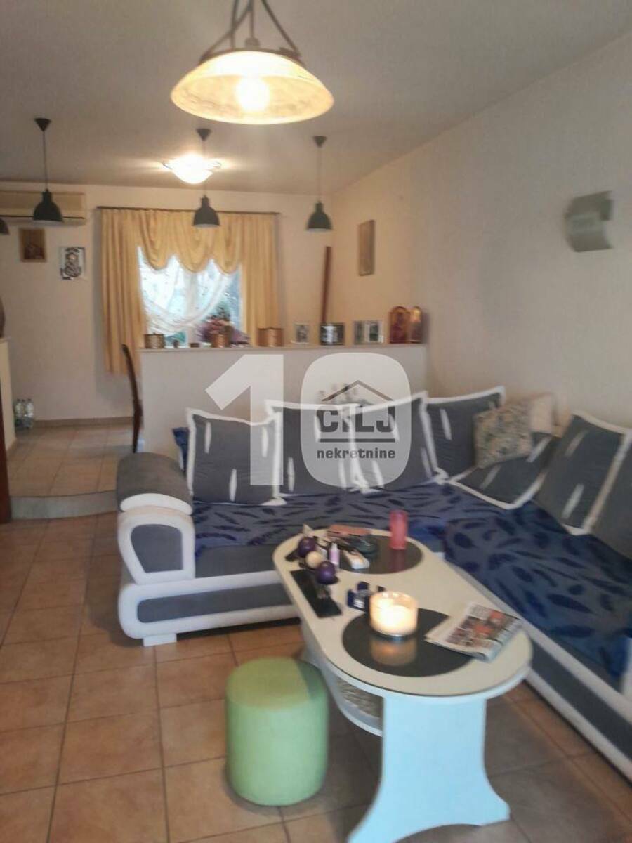 Prizemna kuća od 57m2 je adaptirana u trosobni stan, sa dva ulaza i dva mokra čvora. Ima tavan i mogućnost za izgradnju još jednog sprata (ima odobrenje za izgradnju). Sastoji se od ulaznog antrea, kuhinje sa trpezarijom, dve spavaće sobe i dva kupatila.