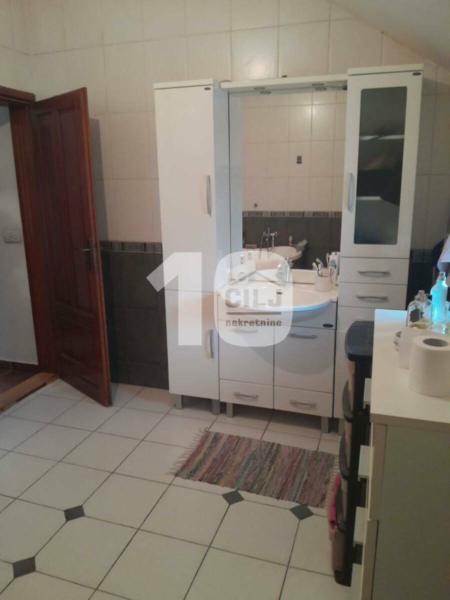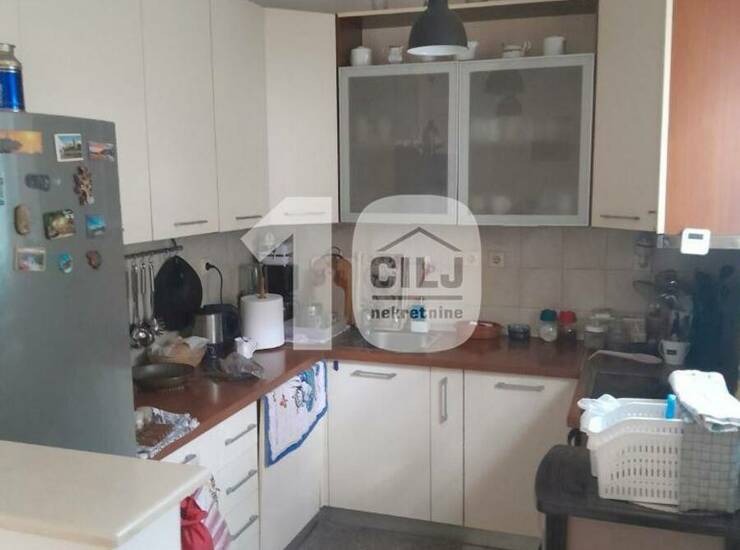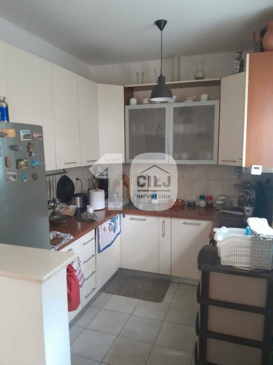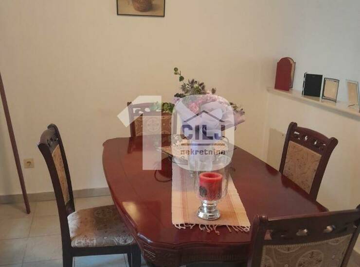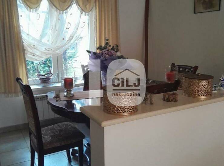 Prizemna kuća od 57m2 je adaptirana u trosobni stan, sa dva ulaza i dva mokra čvora. Ima tavan i mogućnost za izgradnju još jednog sprata (ima odobrenje za izgradnju). Sastoji se od ulaznog antrea, kuhinje sa trpezarijom, dve spavaće sobe i dva kupatila.