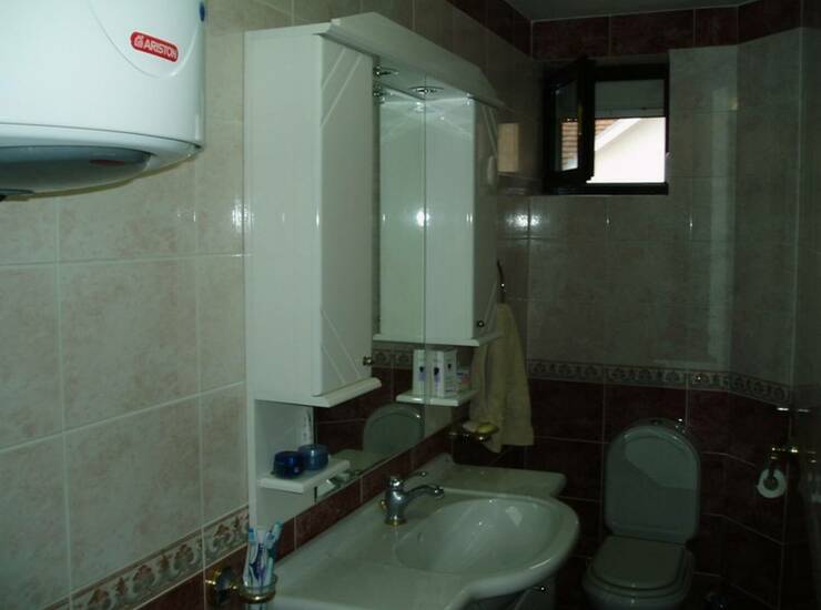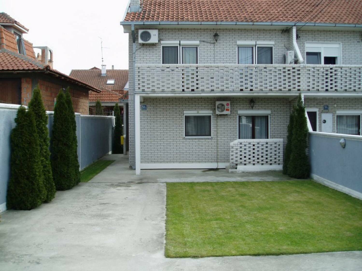 Jedna od tri kuće u nizu sa posebnim (ograđenim) dvorištem, četvorosobna po strukturi, SUT+PR+I, grejanje na gas, telefon, ktv, internet, četiri klime, podrum. U dvorištu mogu da se parkiraju tri automobila i ima deo sa zelenom površinom. Suteren se sastoji od dve velike ostave ukupno 26kvm. Prizemlje ima: kuhinju, trpezariju sa dnevnom sobom, toalet i terasu. Na spratu su tri spavaće sobe i kupatilo. Kuća se nalazi u središnjem delu naselja, u blizini Shop&Go prodavnice. Građena 2000. godine, dobro održavana i ne zahteva ulaganja.