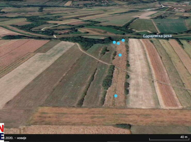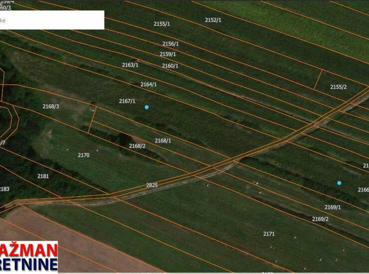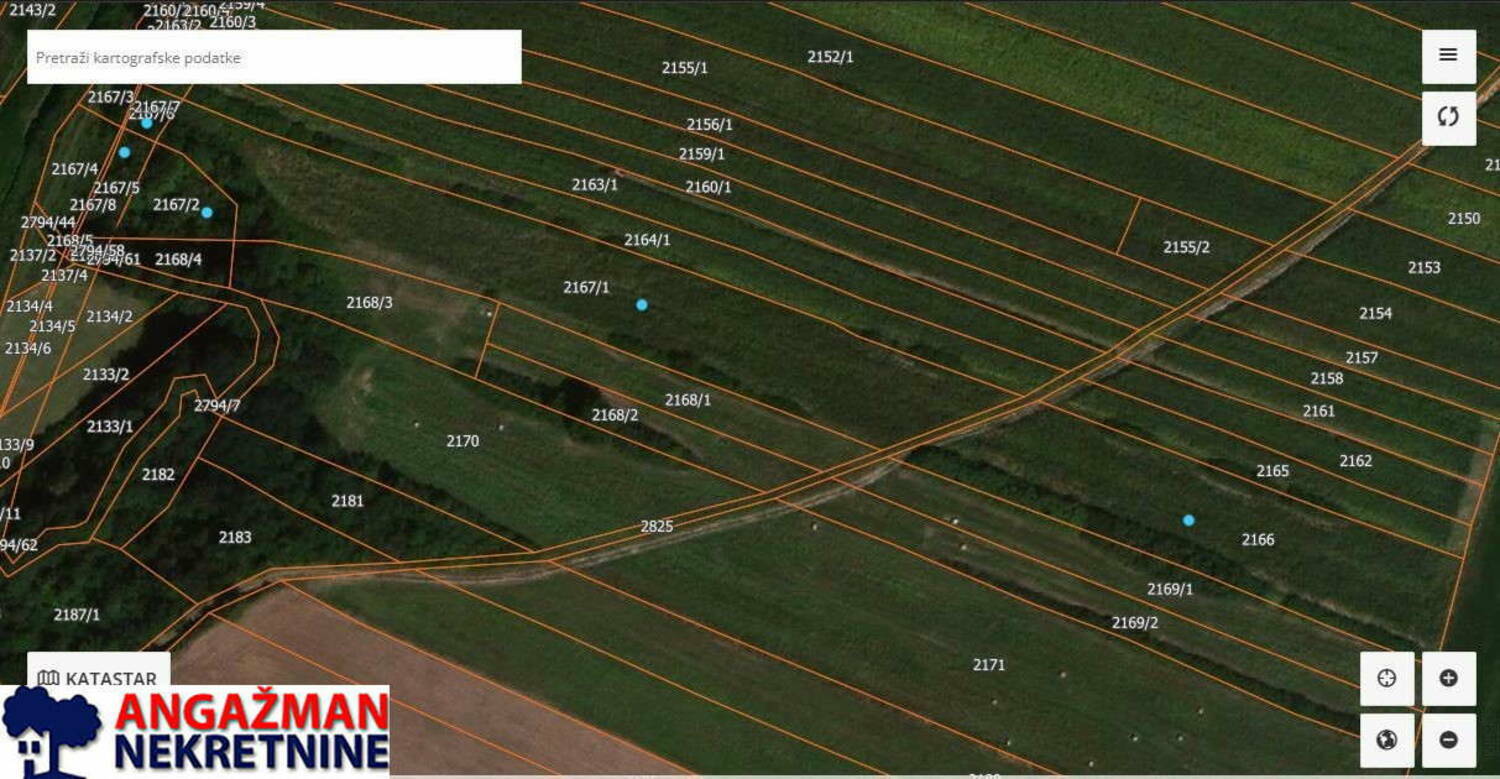 Plave tačkice na geokarti označavaju parcele.