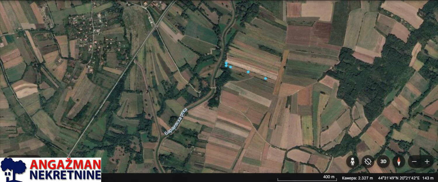 Prodaje se poljoprivredno zemljište u Velikom Borku, opština Barajevo, u dolini Barajevske reke, koje se sastoj od 5 povezanih parcela ukupne površine 1ha 60a 52m2, od kojih dve veće parcele (39a58m2 i 55a62m2) izlaze na nekategorisani makadamski put (mogućnost gradnje), orjentacije istok-zapad gde je istočni deo na višem nivou (5m) od zapadnog pored reke.