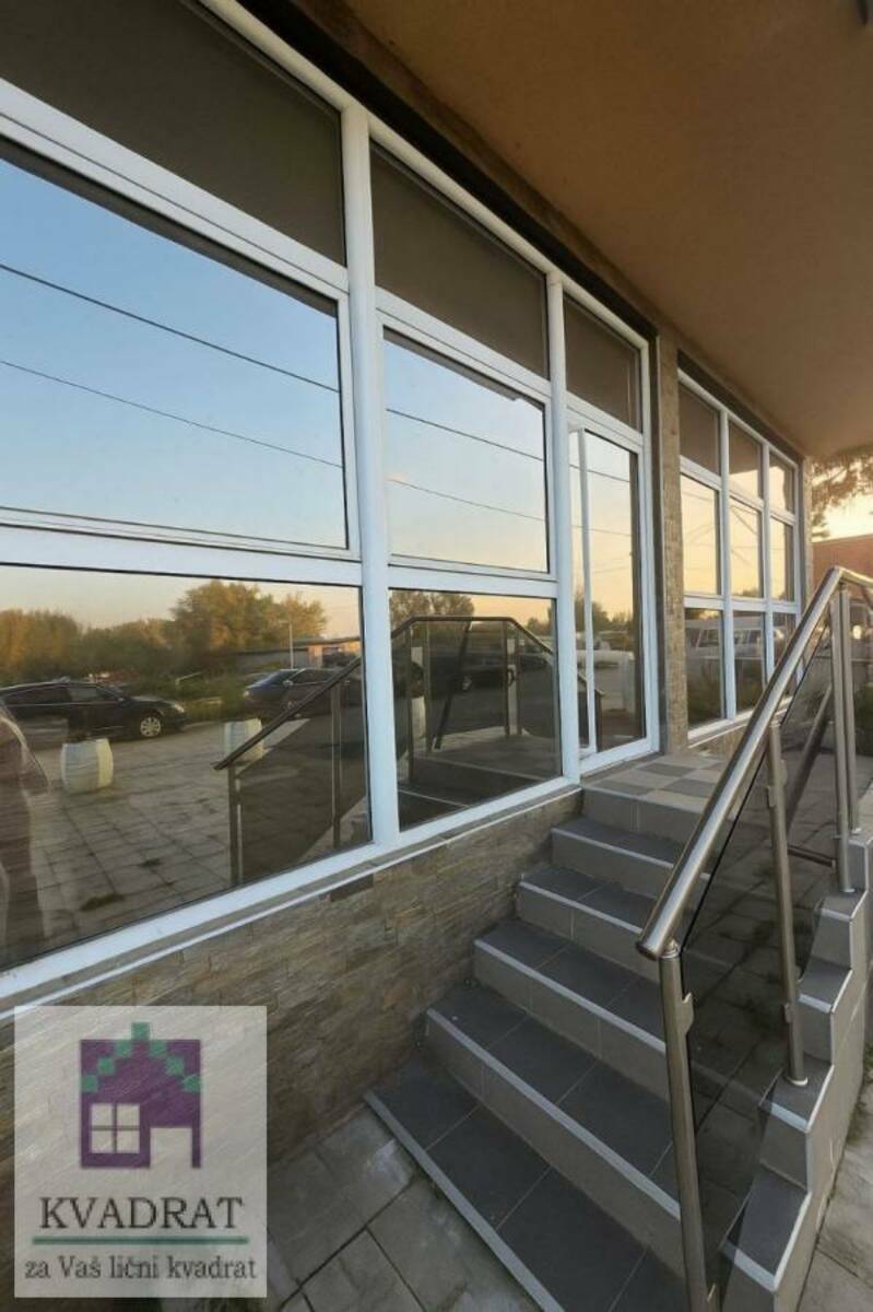 Prostor je kompletno završen, moderan i svetao, sa velikim staklenim površinama ka ulici i prostranom popločanom terasom ispred objekta.