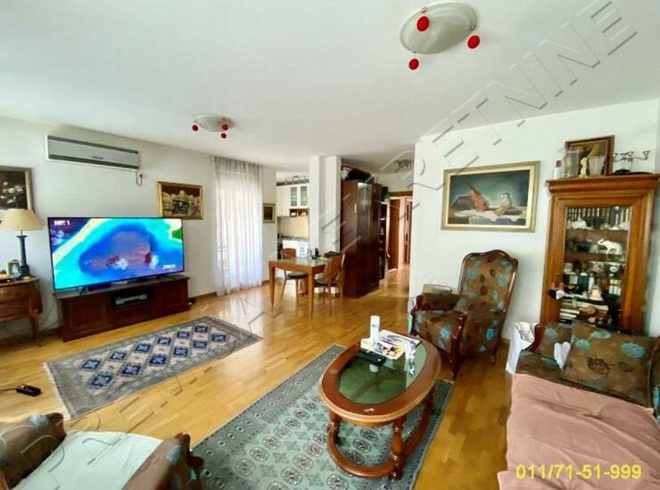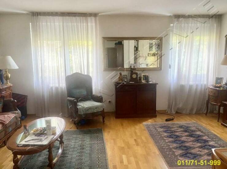 Na prestižnoj lokaciji na Vračaru, na Neimaru prostran trosoban stan sa 2 terase, iz hodnika se ulazi u sve prostorije. Odvojen spavaći blok. Prostorije: ulazni hodnik sa gostinjskim toaletom, dnevna soba sa terasom, odvojen spavaći blok sa dve spavaće sobe, terasom i kupatilom. Preporuka.