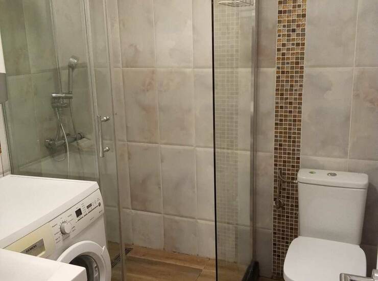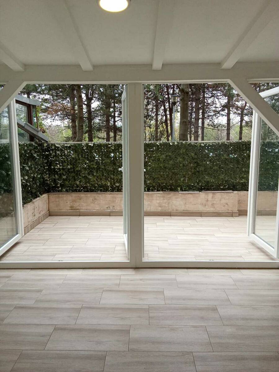 The apartment is located on the high ground floor, elevated 1 metre in relation to the terrain. Rooms oriented on cooling North, with kid’s room and kitchen on South. Venetian mirror windows with blinds.