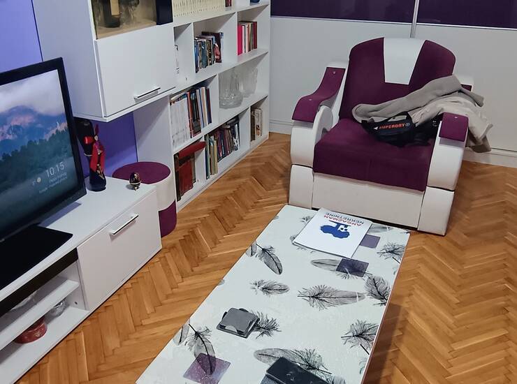 U sklopu stana su dnevni boravak, spavaća soba, kuhinja sa trpezarijom, kupatilo, hodnik i terasa.