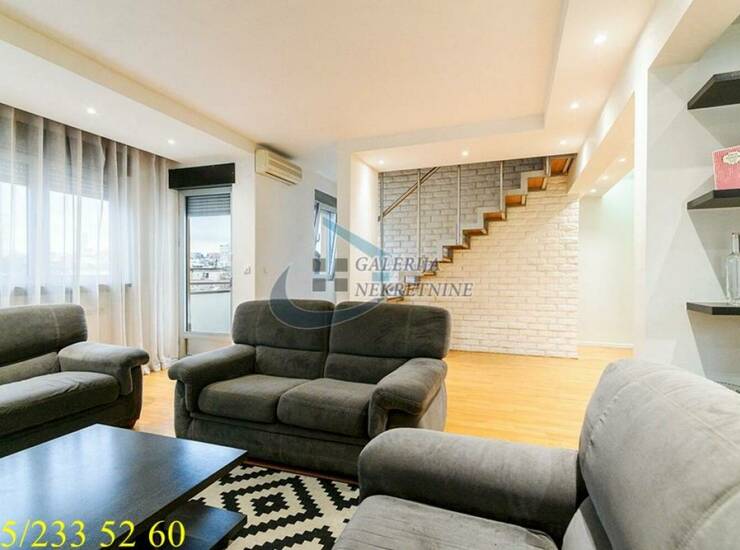 U prilici smo da Vam ponudimo komforan četvorosoban duplex stan na trećem i četvrtom spratu uredne i održavane zgrade novije gradnje iz 2008. godine, bez lifta. Stan zauzima poslednju etažu, što obezbeđuje dodatni mir i privatnost. Stan je dvostrano orijentisan, izuzetno svetao i bez buke, dobro organizovan, komotnih i pravilnih prostorija, sa jasno odvojenim zonama stanovanja. Raspored omogućava funkcionalno korišćenje prostora i prilagođen je savremenim potrebama, dok dva kupatila dodatno doprinose komforu. Stan je u odličnom stanju, bez potrebe za dodatnim ulaganjima. Poseban kvalitet stana predstavljaju tri terase, ukupne površine oko 25m2, koje pružaju dodatni prostor za boravak i uživanje.