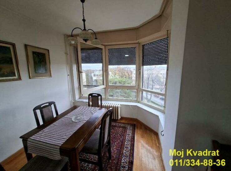 Četvorosoban, izuzetan stan na odličnoj lokaciji na Dedinju. Nalazi se u dobro održavanoj zgradi okruženoj zelenilom, a u neposrednoj blizini glavnih saobraćajnica i svih sadržaja neophodnih za život.
