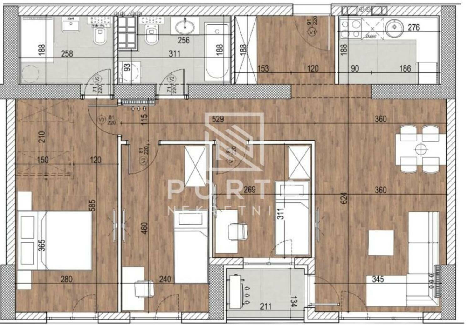 Svaki detalj u stanu odražava kvalitet i funkcionalnost – od rasporeda do savremenih materijala i završne obrade.