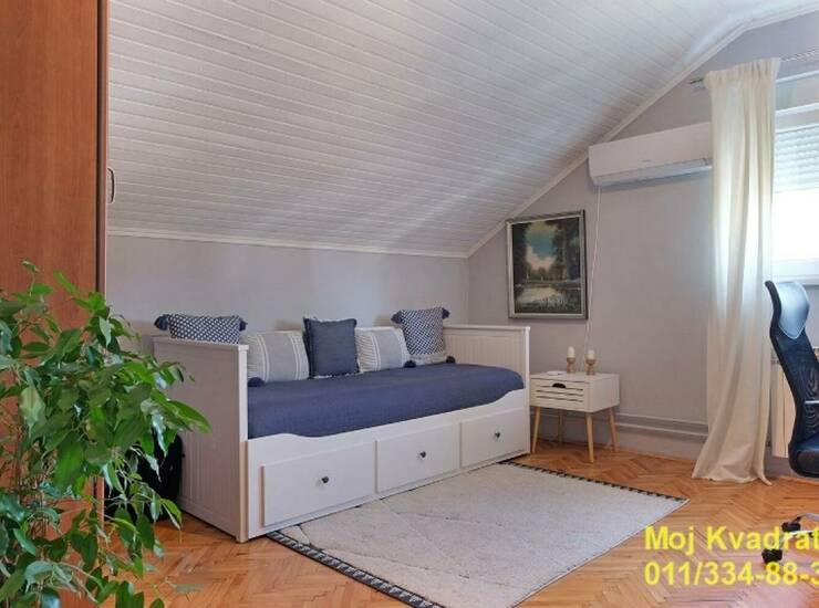 U ponudi komforan, renoviran četvorosoban stan u mirnoj i lepoj ulici u Zemun polju. nalazi se na potkrovlju stambene zgrade, na drugom spratu. Postojeći tavanski prostor je kvalitetnom adaptacijom pretvoren u stan, a sama adaptacija je rađena u skladu sa propisima i građevinskom dozvolom. Vlasnik je nastojao da maksimalno iskoristi raspoloživi prostor, a sam stan odiše toplinom, udobnošću i mirom koji omogućuje zaista prijatno mesto za život.