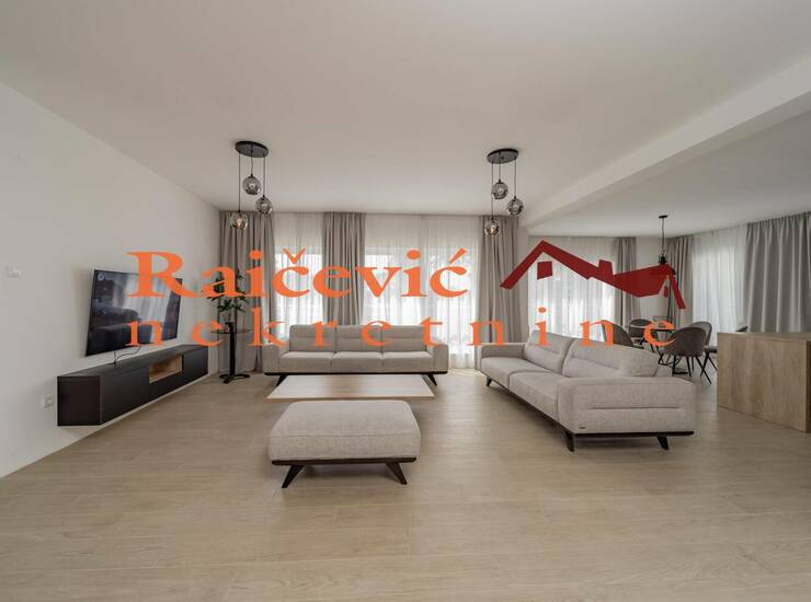 Prostorije: dnevni boravak sa kuhinjom i trpezarijom, 3 spavace sobe, 2 kupatila, ostava i 2 terase.