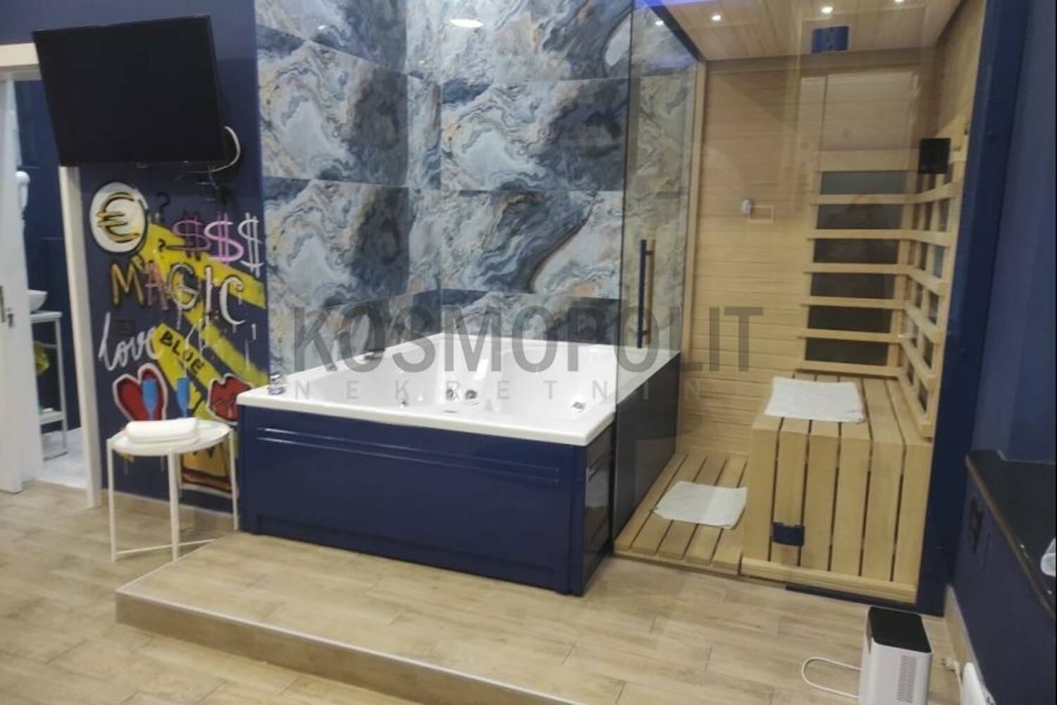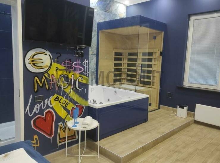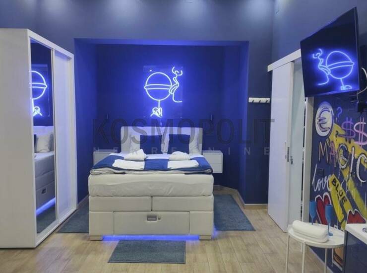 Veoma interesantna luksuzna nekretnina na odličnoj lokaciji kod Đeram pijace, koja se sastoji od 3 odvojena stana - apartmana, moderno i autentično opremljena, ukupne kvadrature 155 m2 sa terasama. Svaki od stanova poseduje spavaći deo, džakuzi, saunu, kuhinju, kupatilo, kompletnu belu tehniku, inverter klime, norveške radijatore, šifratore na vratima. Zgrada je opremljena video nadzorom, ktv. Stanovi su pogodni za biznis "stan na dan", a može se prilagoditi i drugim potrebama. Nekretnina se nalazi u blizini svih bitnih sadržaja za komforan život, gradskog prevoza, pijace, prodavnica.