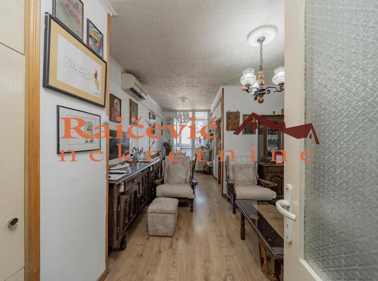 Prostorije: ulazni hodnik, dnevna soba sa trpezarijom, kuhinja, 2 spavace sobe, kupatilo, zastakljena lodja i terasa. Poseduje i pripadajuci podrum.