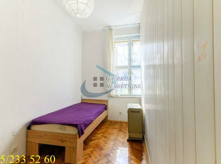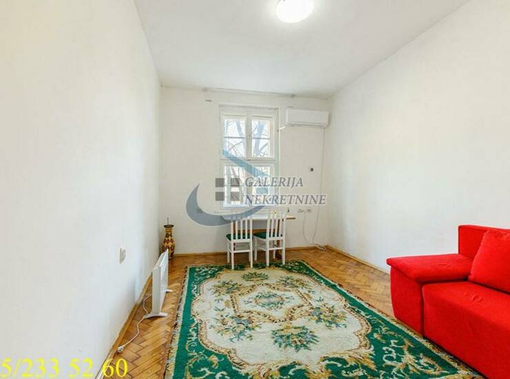 U prilici smo da Vam ponudimo dvoiposoban salonski stan na visokom prizemlju dvospratne zgrade sa malo stanova, zidane 1927. godine, u neposrednoj blizini Skadarlije, Bajlonijeve pijace i Trga Republike. Izvorno dvosoban, uspešno adaptiran u dvoiposoban pregrađivanjem jedne velike sobe. Pregrada se lako može ukloniti i stanje vratiti u izvorno. Dvostrano je orijentisan i svetao tokom celog dana, fukcionalnog rasporeda (iz centralno pozicioniranog predsoblje se ulazi u sve prostorije). Svaka prostorija ima prirodnu ventilaciju. Visina plafona je 3,0m. Stan je delimično renoviran, pri čemu su grubi radovi urađeni, poput vodovodnih i električnih instalacija. Parketi su hoblovani, drvenarija osvežena, pa ne zahteva veća ulaganja. Grejanje na struju omogućava racionalizaciju troškova. Stan ima i pripadajući podrum.