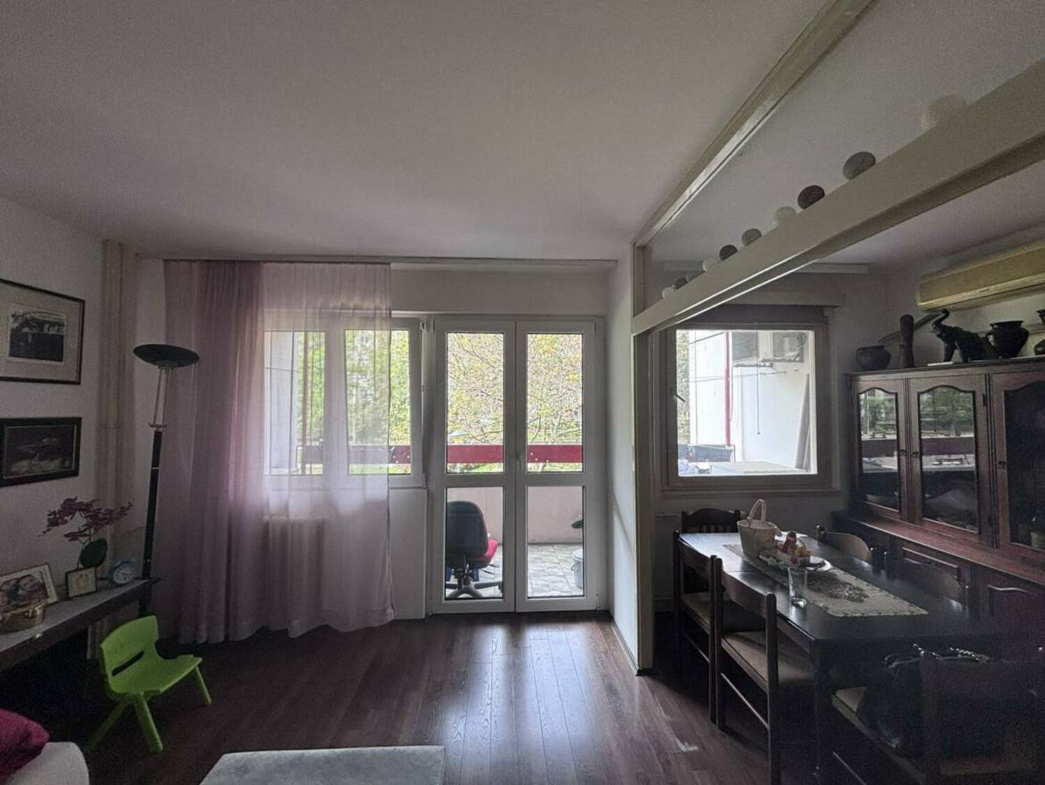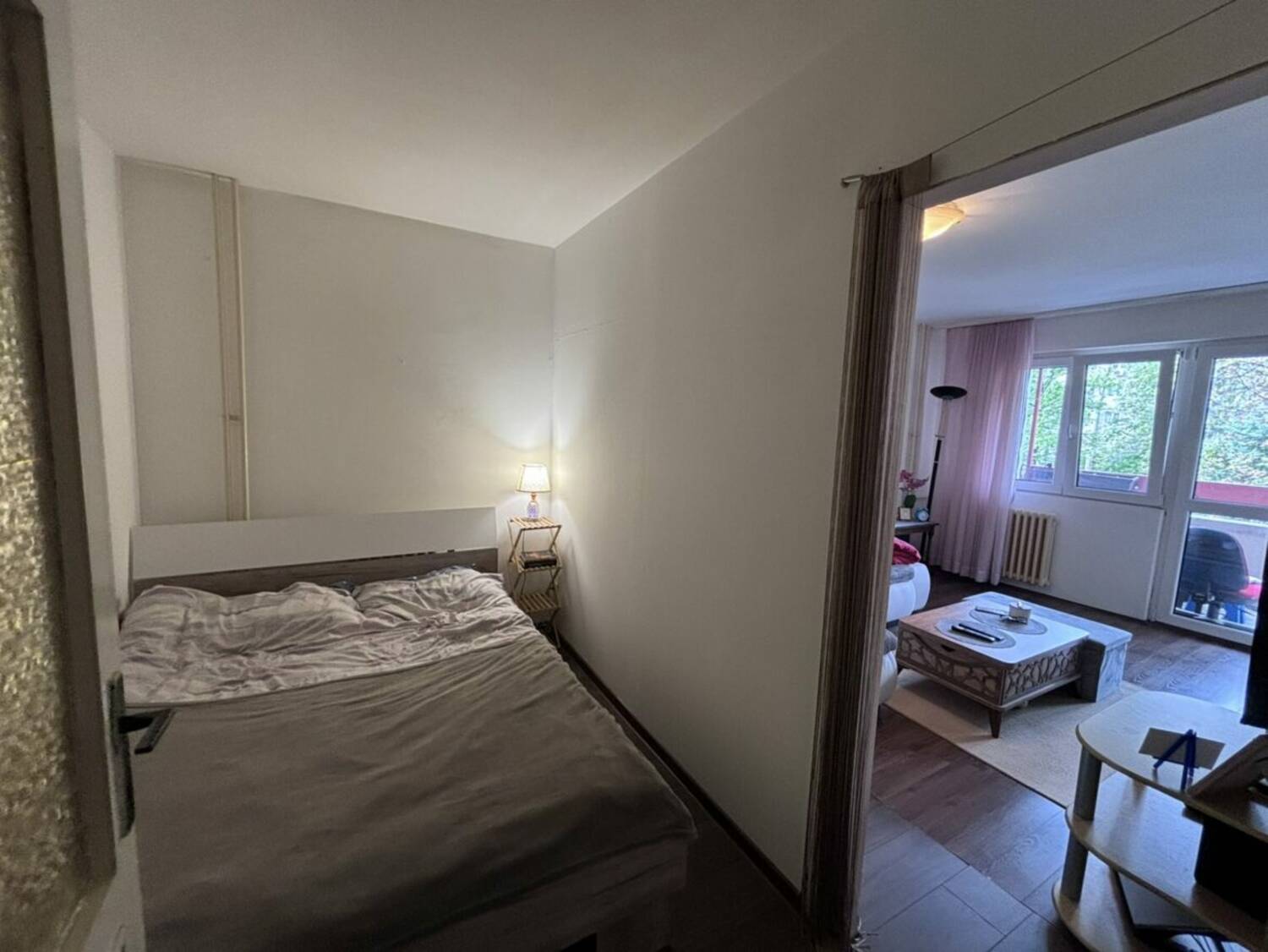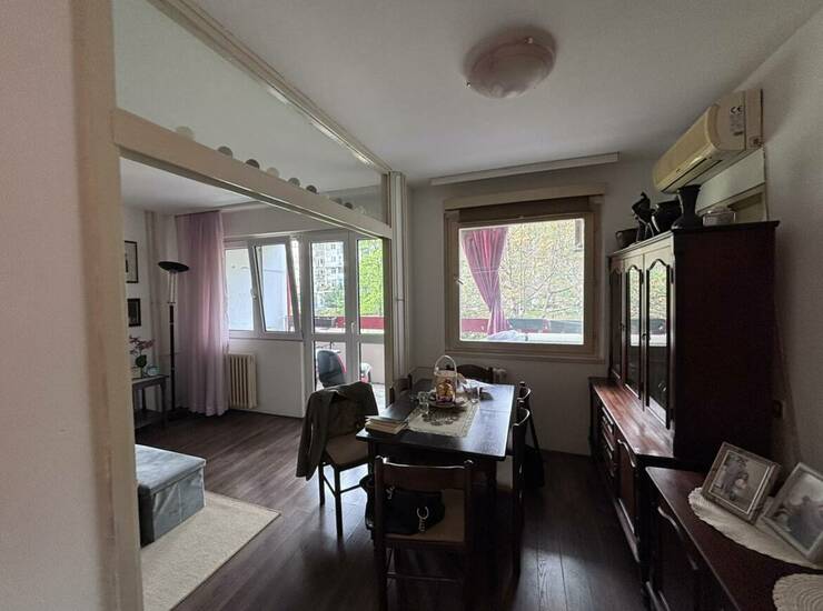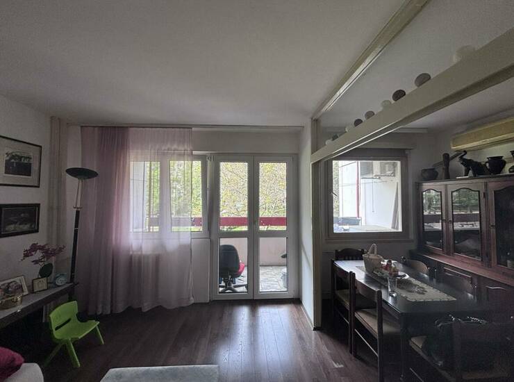 Funkcionalan raspored: iz ulaznog dela prostiru se dva hodnika. Desno se ulazi u spavaću sobu i toalet, dok se pravo iz hodnika dolazi do prostranog dnevnog boravka sa odvojenom kuhinjom. Stan ima odličan potencijal za adaptaciju u dvoiposoban, što su mnogi stanovi u zgradi već realizovali. Trenutno je pregradnim zidom organizovan tako da poseduje dve odvojene spavaće sobe.