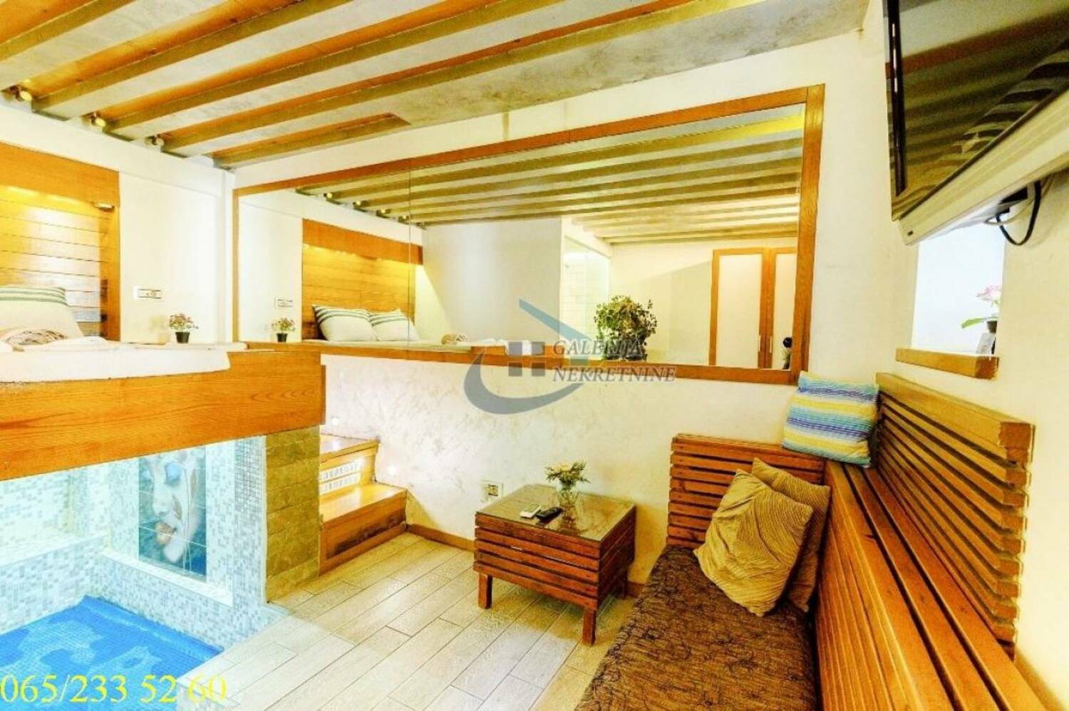 2.0, 44 m2, PR/4, CG, podeljen na dva apartmana, klima, internet, sauna, đakuzi, bazen, akvarijum, KTV
