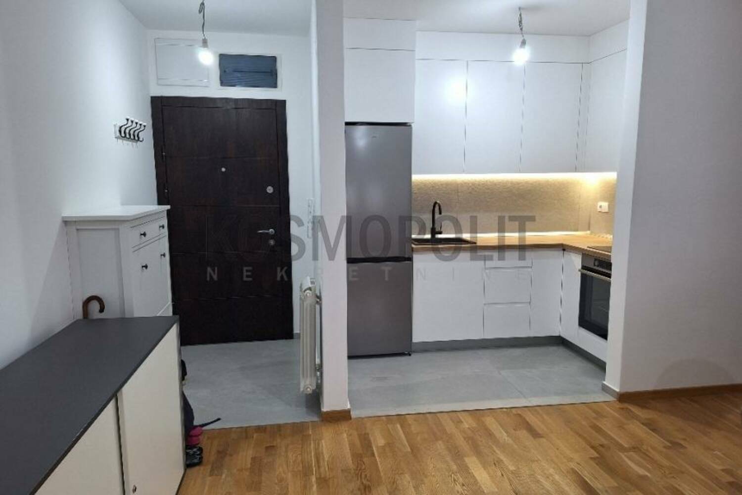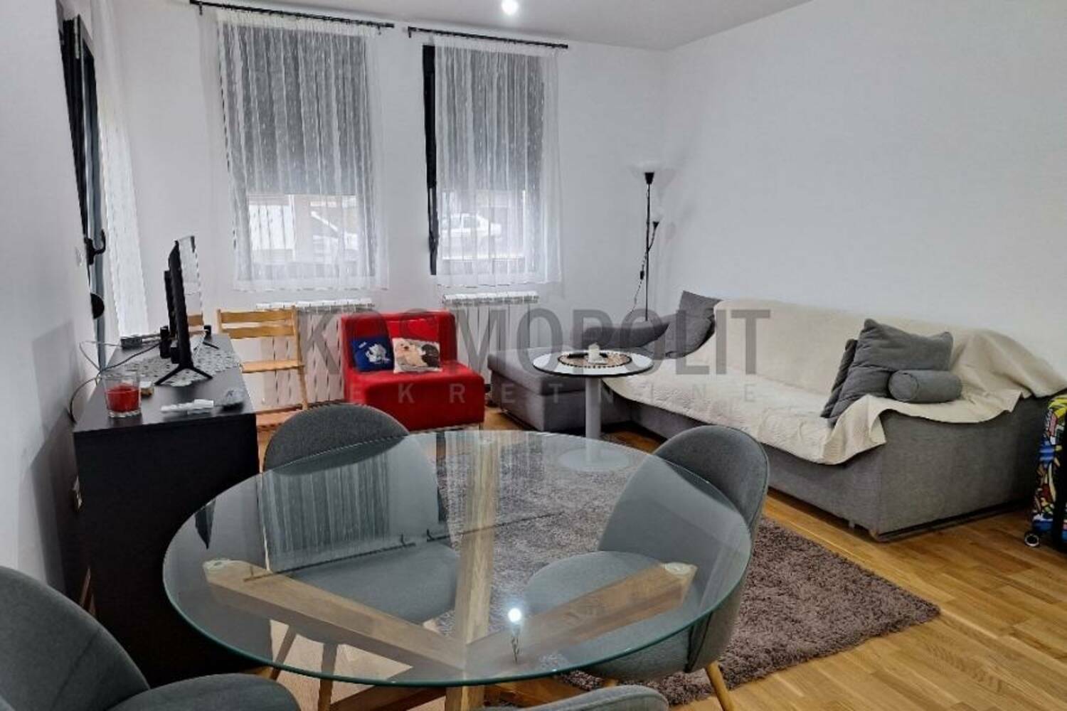 Stan se prodaje delimično namešten sa kompletnom ugradnom kuhinjom i plakarima.