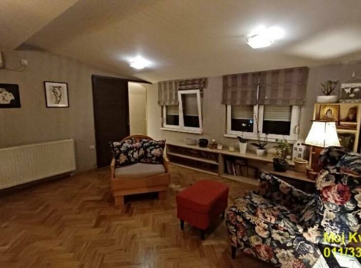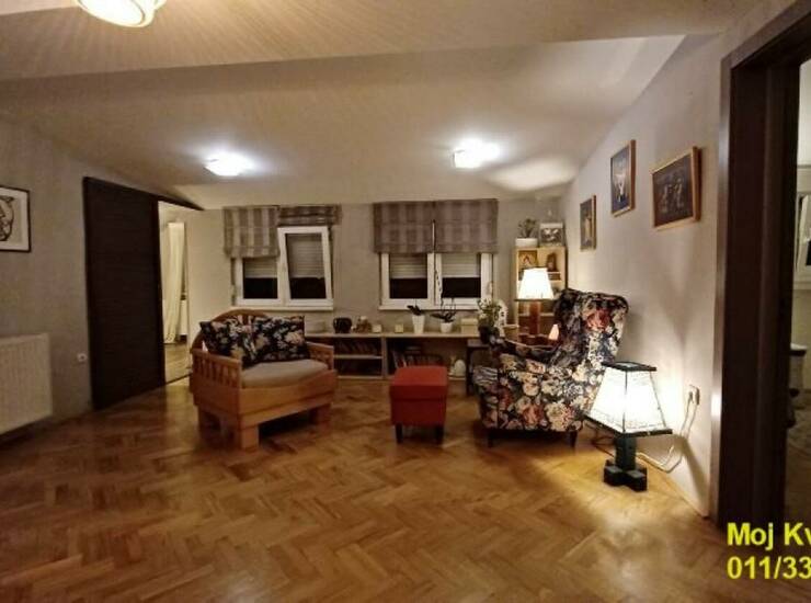 Uknjižen na 65m2, a stvarna merena kvadratura iznosi 110m2 (10m2 dve lođe + 35m2 je dobijeno adaptacijom prostora).