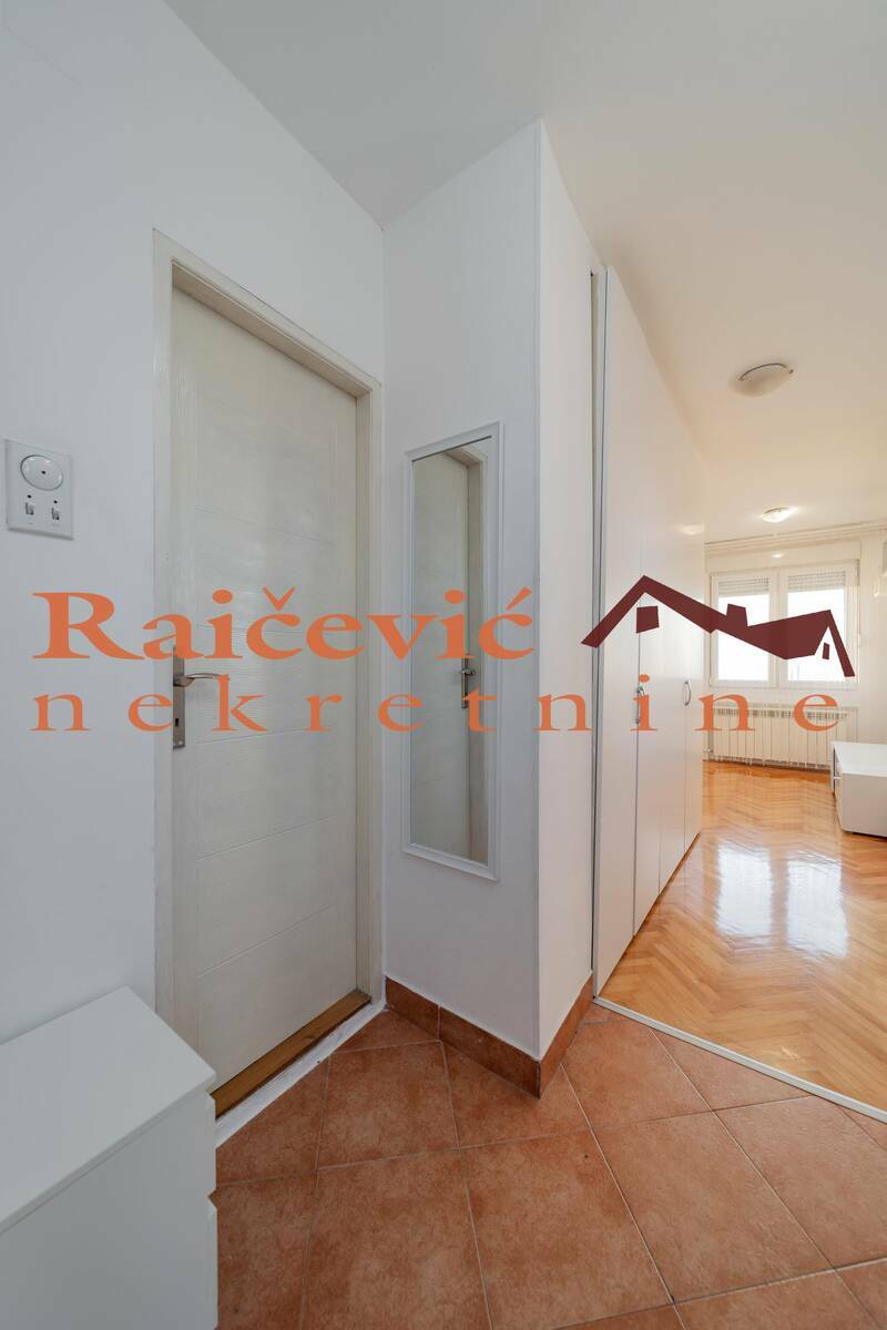 Julino brdo, Porucnika Spasica i Masere, 0.5, 26 m2, zajednicka terasa od 30 m2 na spratu ispod (pravo koriscenja za 3 stana), XV od XV spratova, cg, 2 lifta (idu do 14. sprata), interfon, ktv, internet, klima, brzo useljiv, uknjizen na 26 m2, starogradnja.
