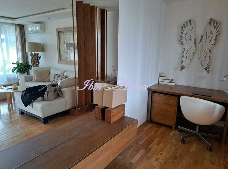 Stan se prodaje kompletno namešten sa svim nameštajem i tehnikom kao na slkama. Bela tehnika je Miele, nameštaj izrazito malo korišten. U trpezarijskom delu je Petroff klavir iz ograničene serije. Stan ima pogled na Dunav. Stan ima pripadajuću ostavu na istom spratu.