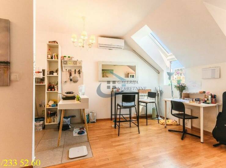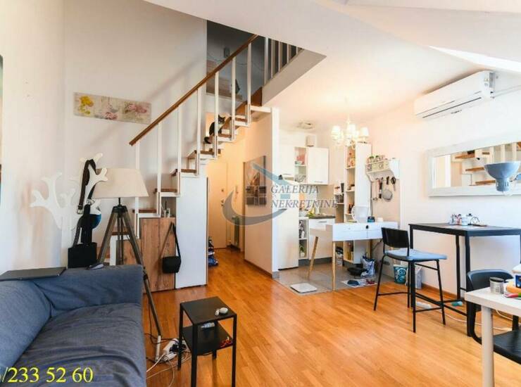 U prilici smo da Vam ponudimo jednoiposoban stan na poslednjem spratu čevorospratnice sa liftom izgrađene 2019. god. Zgrada je luksuzno građena i u odličnom je stanju spolja i iznutra. U pitanju je šarmantan i moderan stan na dva nivoa. Na donjem je dnevni deo a galerija je u funkciji spavaće sobe sa vrlo korisnim i komotnim garderoberom. Kroz velike prozore dopire puno dnevnog svetla. Terasa sa lepim i otvorenim pogledom, na koju se izlazi iz dnevnog boravka, je idealna za sedenje i uživanje. U odličnom je stanju pa značajna ulaganja nisu potrebna. Prodaje se kompletno namešten i opremljen. Grejanje je centralno, po utrošku.
