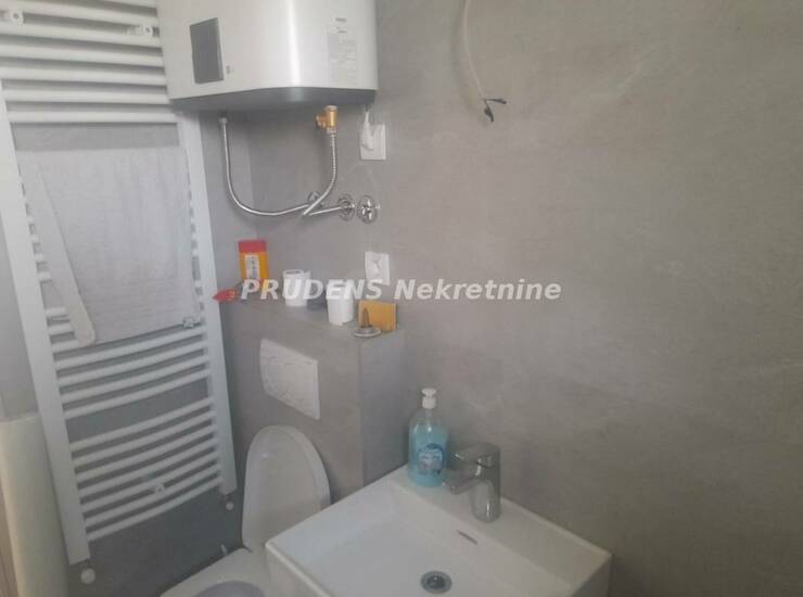 Stan se sastoji iz manjeg predsoblja, komotnog kupatila, jedne manje sobe I većeg kuhinjsko-dnevnog boravka iz koga se izlazi na veću terasu. Na podu se nalazi laminat.