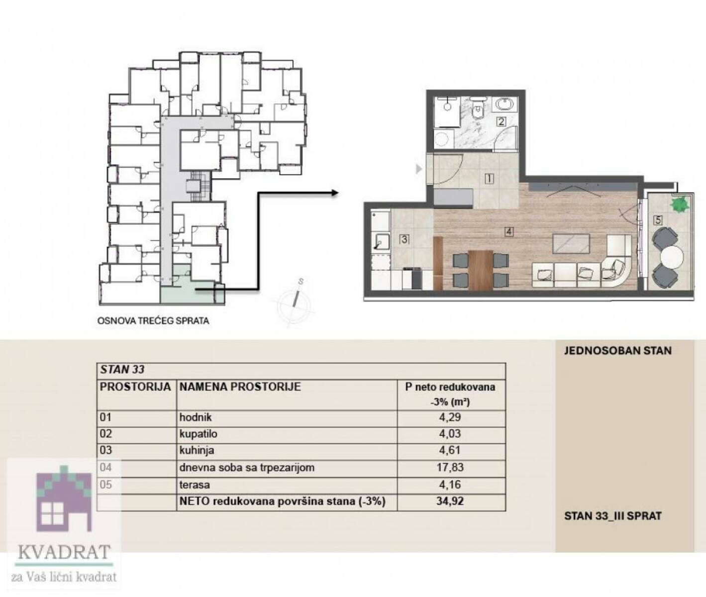 Na prodaju jednoiposoban stan površine 34.92m² u kvalitetnoj novogradnji. Stanovi su dostupni od prvog sprata do potkrovlja, sa funkcionalnim rasporedom koji pruža maksimalnu udobnost za život.