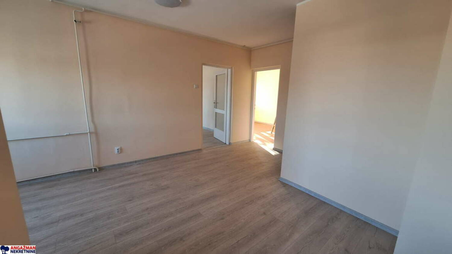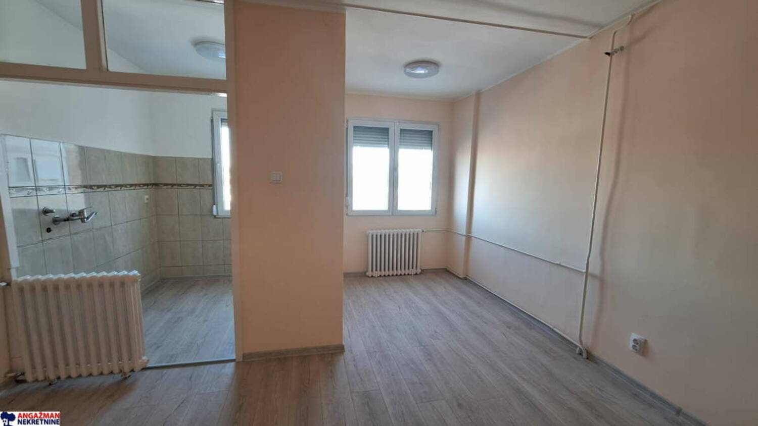 Prostorije: hodnik, kuhinja sa trpezarijom i dnevnim boravkom, dve odvojene spavaće sobe i kupatilo.