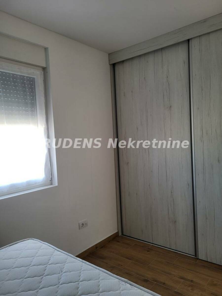 Raspored prostorija je odličan: ulazni hodnik, predsoblje, veliki dnevni boravak sa kuhinjom i trpezarijom i izlazom na terasu, spavaća soba, druga manja spavaća soba sa izlazom na drugu terasu i kupatilo.
