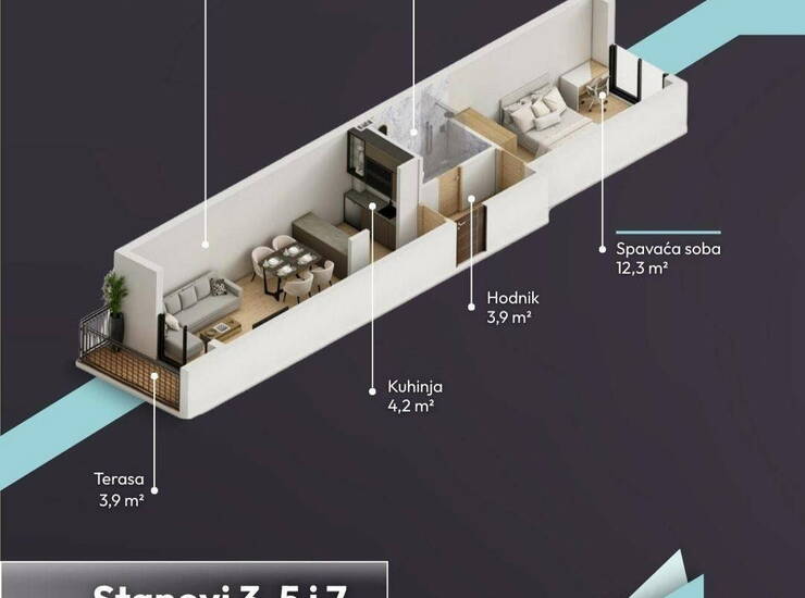 Prodaja dvosobnog stana u ranoj fazi izgradnje, na I/3, grejanje na toplotne pumpe, lift.