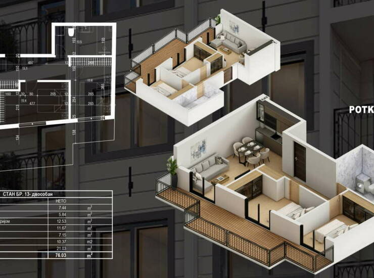 Prodaja trosobnog stana, u ranoj fazi izgradnje, PR/III, grejanje na toplotne pumpe, lift, terasa oko stana.
