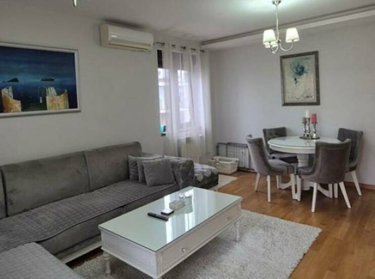 Prodaje se polunamešten, sa ugradnim plakarima i kuhinjom rađenom po meri, opremljenom kvalitetnom ugradnom tehnikom.