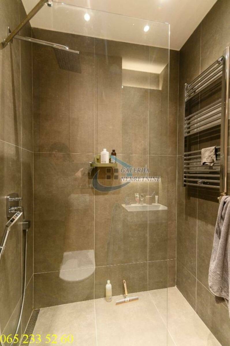 U prilici smo da vam ponudimo trosobni lux stan na prizemlju četvorospratnice sa liftom izgrađene iz 2024. godina. Zgrada je vrlo kvalitetno zidana i ugrađeni su vrhunski materijali i oprema. Dobro je održavana pa je i dalje kao nova. Stan je dvostrano orijentisan i svetao. Prostorije su vrlo funkcionalno raspoređene. Ogromna pogodnost je pripadajuće ograđeno dvorište od 80m2 koje se proteže oko celog stana i koje ima odvojeni diraktan ulaz i video nadzor i osvetljenje. Deo dvorišta je nadkriven kaljenim staklom. Zatvaranjem ili zastakljivanjem dela dvorišta može da se dobije dodatna prostorija, npr. zimska bašta, letnja kuhinja, itd. Svaka soba ima direktan izlaz u dvorište. Stan je vrlo luksuzno dizajniran, opremljen i namešten po meri. Perfektno urađen do najsitnijih detalja. Visina plafona od 2,9m dodatno doprinosi osećaju prostranosti i komfora. Prodaje se kompletno i vrhunski opremljen i namešten. Ugrađene su električne roletne, troslojni vrhunski parket, dve klime, Haier uređaji, vrhunska troslojna stolarija, protočni bojler, itd. Vrlo korisno, u dvorištu se nalazi prostorija koja je namenjena smeštaju veš mašine, mašine za sušenje i sl. Grejanje je podno na s