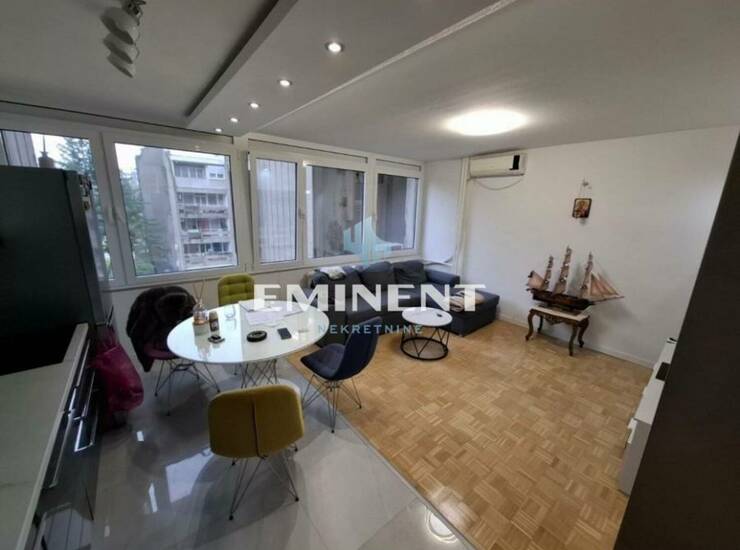 Kompletno renoviran, lepo uređen stan, funkcionalan, prodaje se u viđenom stanju. Čine ga open space - dnevni boravak sa kuhinjom i trpezarijom, spavaća soba, mala ostava, kupatilo i terasa. Stan je uknjižen na 46m2, dok stvarna kvadratura iznosi 47.35m2.