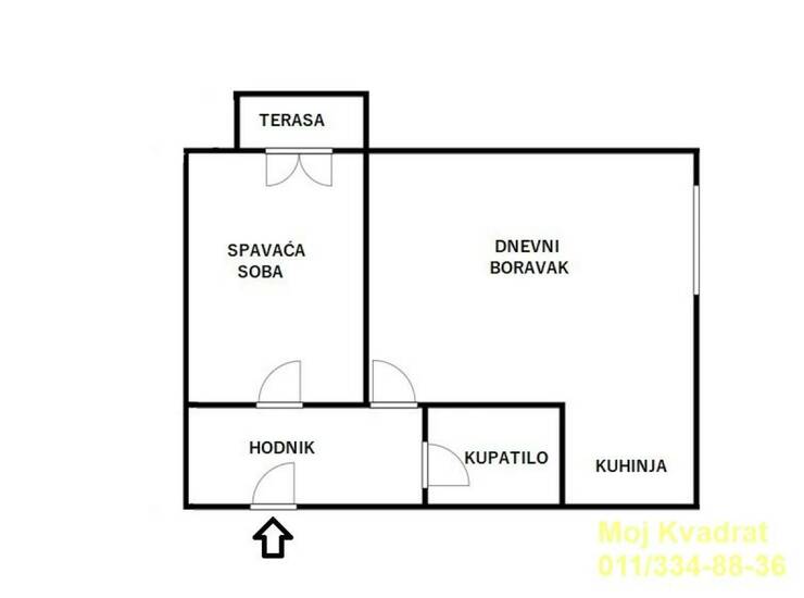 Prostorije: dnevni boravak sa kuhinjom, spavaća soba sa izlazom na terasu, kupatilo i hodnik. U stanu su zamenjeni prozori.