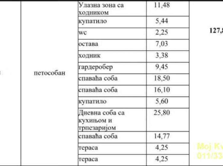 5.0, 128m2 (dve terase 9m2), 6/8, EG-podno grejanje, lift, telefon, interfon, garaža