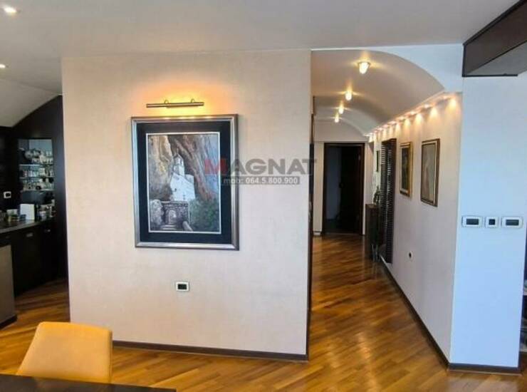 Stan je izuzetno svetao, orijentisan S-I ali vide se sve strane Sveta, trenutno stanje je Lux moderno projektovan i namešten, stolarija termopan (Alu/drvo), parket je pareni bagrem, moderno slagan, grejanje je daljinsko CG, stakleni kamin (odlično radi, poseban večernji ugodjaj), podno grejanje (kuhinja i kupatilo), ima klima uređaje (podne i zidne), centralni bojler 300l + protočni (Siemens) bojler, sigurnosna vrata, interfon, video nadzor, kablovsku, fiksni telefon.