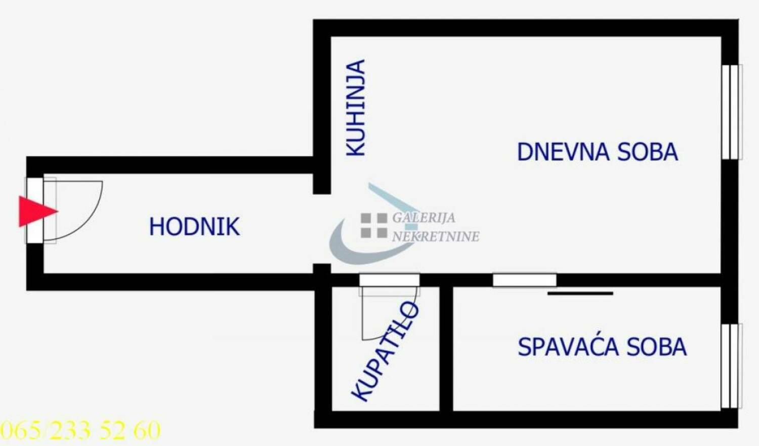Od prostorija: ulazni hodnik, dnevno-kuhinjski deo, spavaća soba i kupatilo.