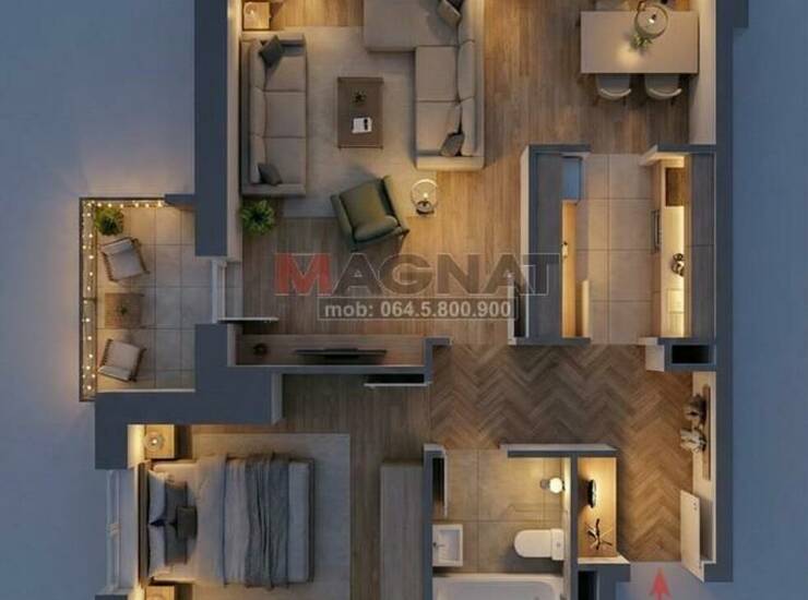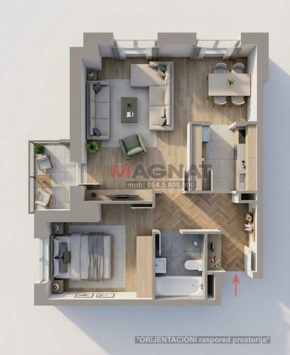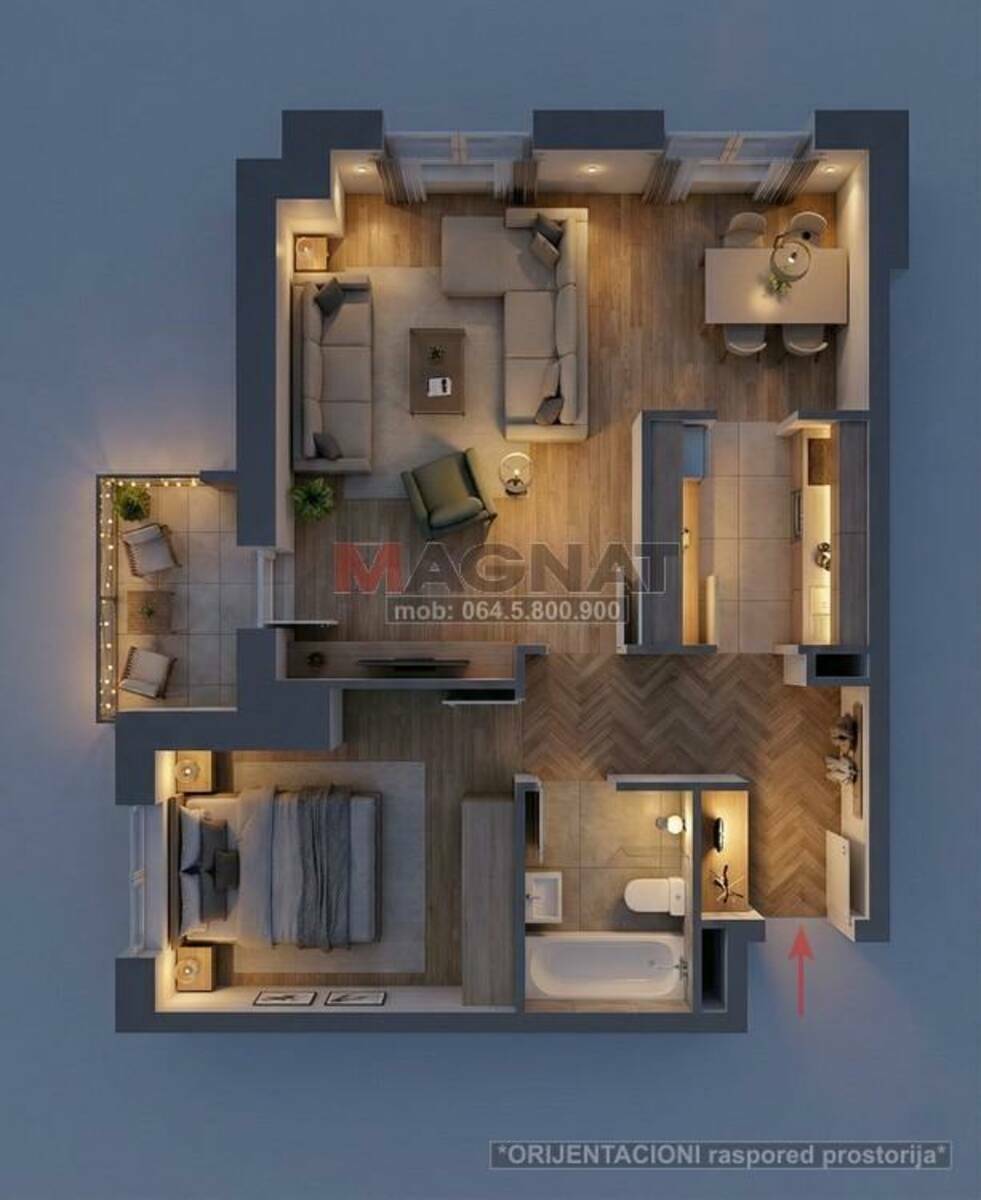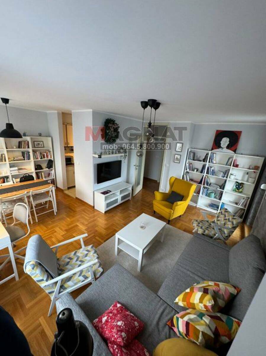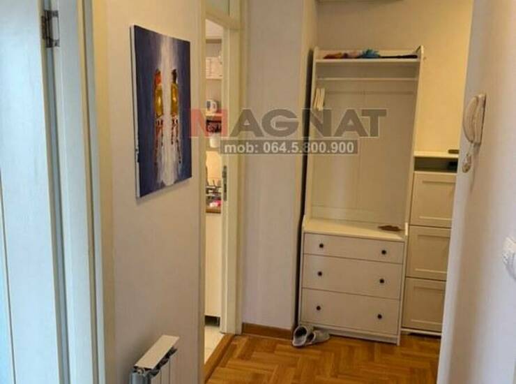 PROSTORIJE: antre, dnevna soba sa trpezarijom, lođa, kuhinja, spavaća soba, kupatilo + podrum. Stan je svetao i topao, dvostrano orijentisan S-I/J-I (pogled prema Istočnoj kapiji Beograda), trenutno stanje je odlično, moderan parket (riblja kost), grejanje je daljinsko CG (sa kalorimetrima - možete isključiti bilo koju prostoriju ili ceo stan - ako niste dugo u Beogradu - godišnja ušteda oko 300e), ima klimu, interfon, kablovsku, optički Internet... U cenu je URAČUNAT kompletan nameštaj, opremljena kuhinja i kupatilo. Adaptibilan je u 2.5 soban (pretvaranjem trpezarije u malu sobu).
